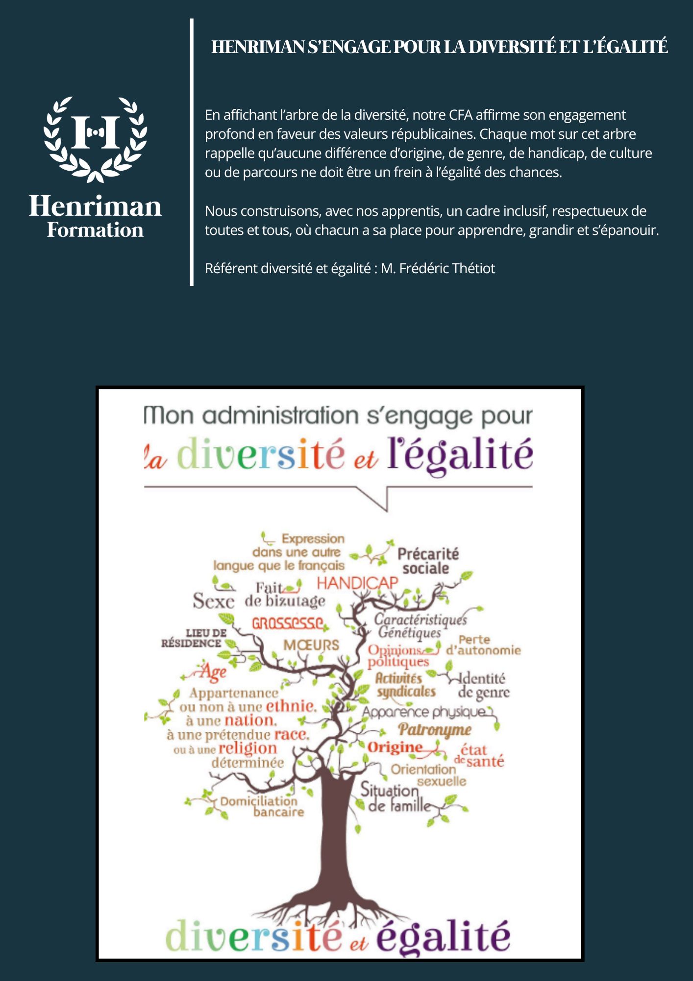 Henriman promeut la mixité, l’égalité, la lutte contre les discriminations et la prévention du harcèlement au travail.